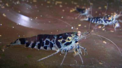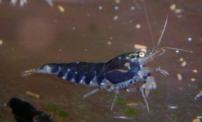 2007: Meine schwarzen Tigergarnelen erwarb ich 2005 von Kai Quante. Mit denen hatte ich nur Probleme: wenige Jungen, die schlecht wuchsen; regelmäßige Todesfälle ohne nachvollziehbare Ursache. Zum Schluß hatte ich von 15 Alttieren und ca. 100 Junggarnelen noch 1 Männchen und zwei Weibchen die ich mal in der Garage bei 15°C, etwas Sonnenlicht und keinem Futter 3 Monate gammeln ließ. Das haben sie problemlos überlebt, auch dass ich nur Wasser auffüllte und sich eine dicke Schmieralgen-, Mulm- und Totefliegenpampe gebildet hat.