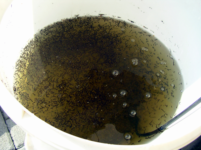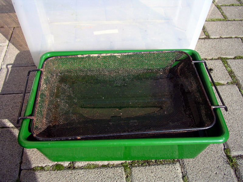 Madensieb mit 2 mm Maschen, ideal zum Größesortieren von schwarzen und weißen Mückenlarven