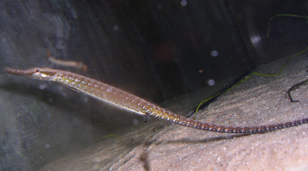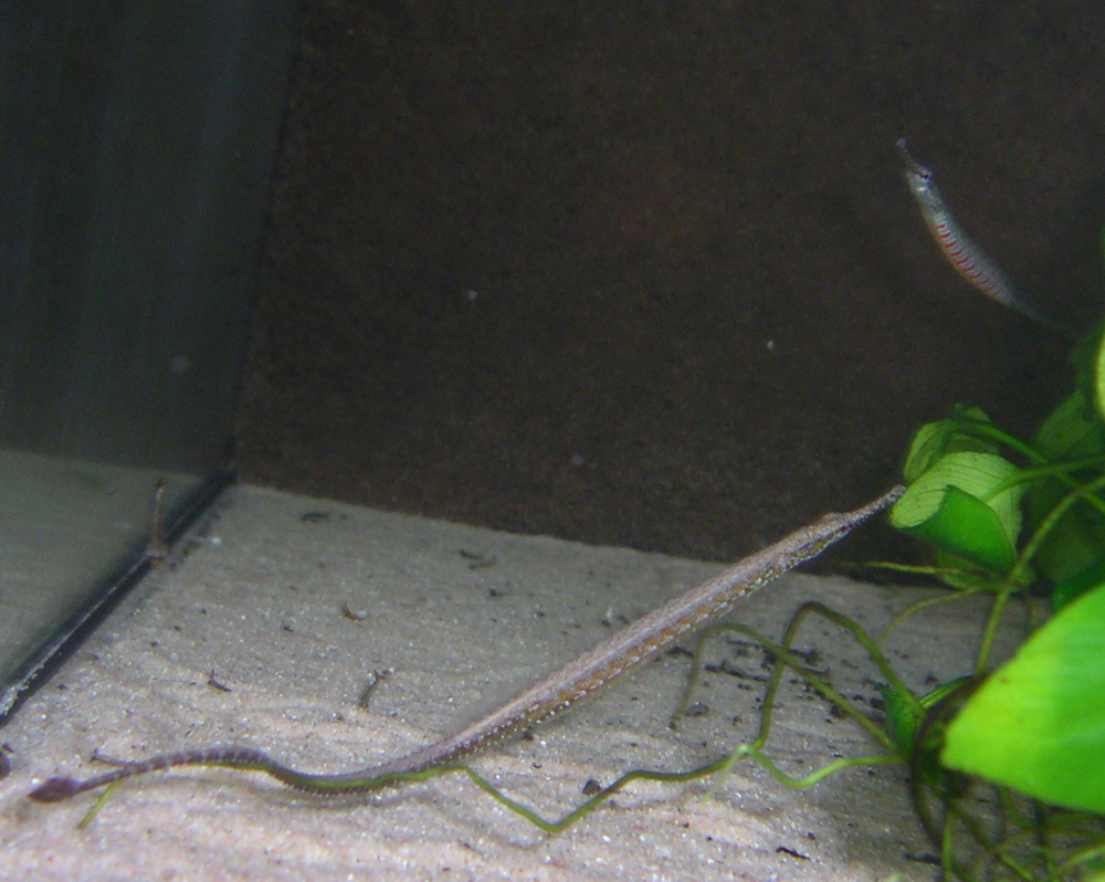 Zusatz von 10/2009: Nach dem am Anfang keine weiße Mückenlarven gefressen wurden, werden diese jetzt auch gefressen. Zusätzlich mit größeren selbst gezogenen oder gekauften Artemien sollte es kein Problem sein seine Microphis deocata über den Winter zu bekommen